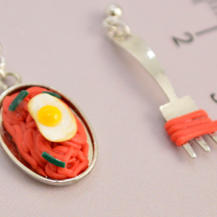 サクっとした質感を再現されたトーストピアスや、モーニングの定番でわき役ながら絶対的な存在感をはなつ目玉焼きのピアス、忘れてはならないナポリタンのピアスなどなど…